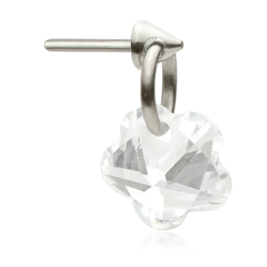 Ti Threadless Attachment with Flower Shaped Gem Charm Gauge: 1.0/1.2/1.6mm (0.5mm threadless) Charm Size: 5mm x 4mm Medical Grade Titanium 6Al-4VEli ASTM:F-136