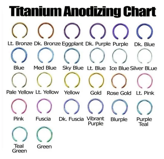 Implant grade titanium , comes in the standard titanium colour but can be anodised to any colour on the chart.